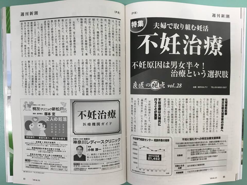 4月4日発売の週刊新潮(4月11日号)に協賛記事が載りました。よろしければご覧ください